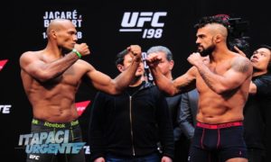 Lutadores durante a pesagem para o UFC 198 realizado na Arena da Baixada.