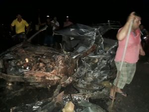 O acidente ocorreu por volta das 21H30. Segundo informações da Polícia Militar, uma van e uma VW Parati foram os envolvidos no acidente. Os dois veículos, que estavam em sentidos opostos na rodovia, colidiram frontalmente no trevo entre Santa Terezinha e Campos Verdes.