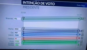 Pesquisa Ibope: Bolsonaro, 22%; Marina, 12%; Ciro, 12%; Alckmin, 9%; Haddad, 6%