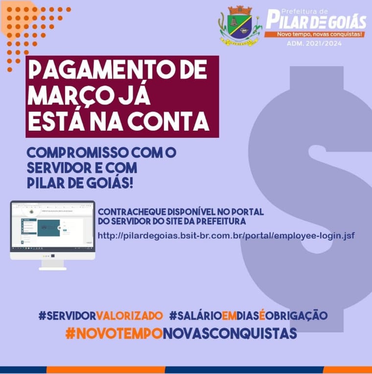 TÁ NA CONTA! | PREFEITURA DE PILAR DE GOIÁS LIBERA O PAGAMENTO DE MARÇO DOS SERVIDORES MUNICIPAIS
