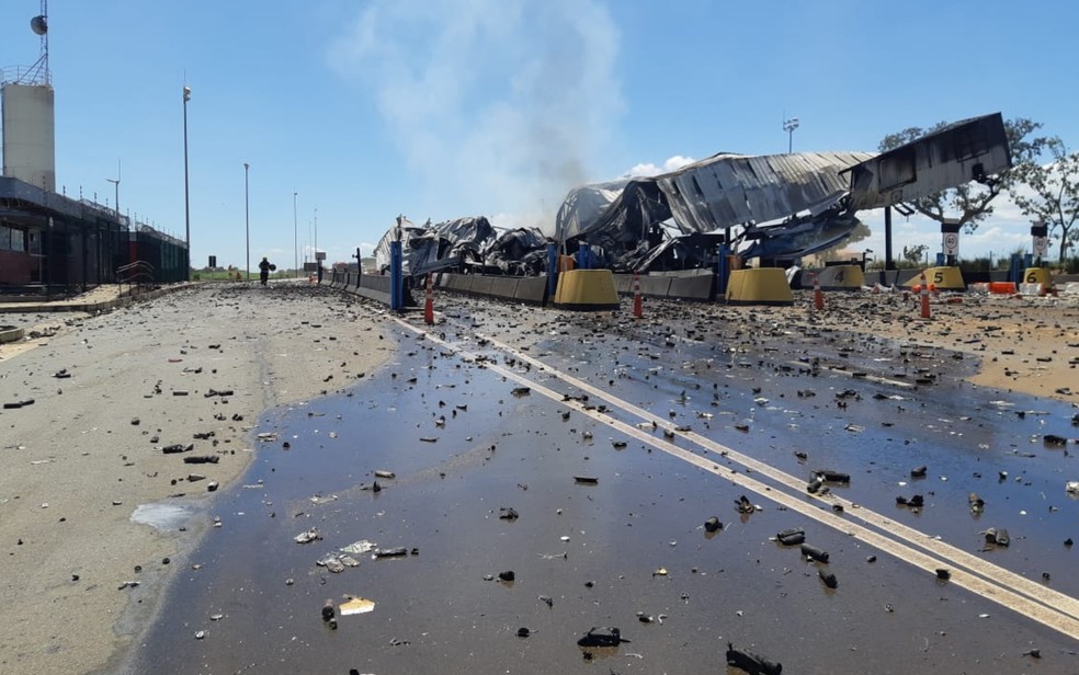 Essa série de colisões, conforme a PRF, provocaram um incêndio que destruiu a praça de pedágio e também atingiu um caminhão graneleiro, que estava parado no local. Porém, este caminhoneiro conseguiu desembarcar antes que o fogo atingisse a cabine e saiu ileso.