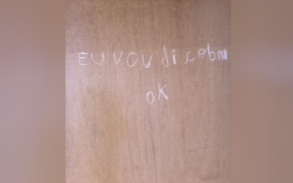 O jovem deixou uma ameaça riscada na porta de entrada da residência, após arrombar e revirar a casa: “Eu vou descobrir, ok“. Ela acredita que o texto se refere à sua localização após fugir da cidade.