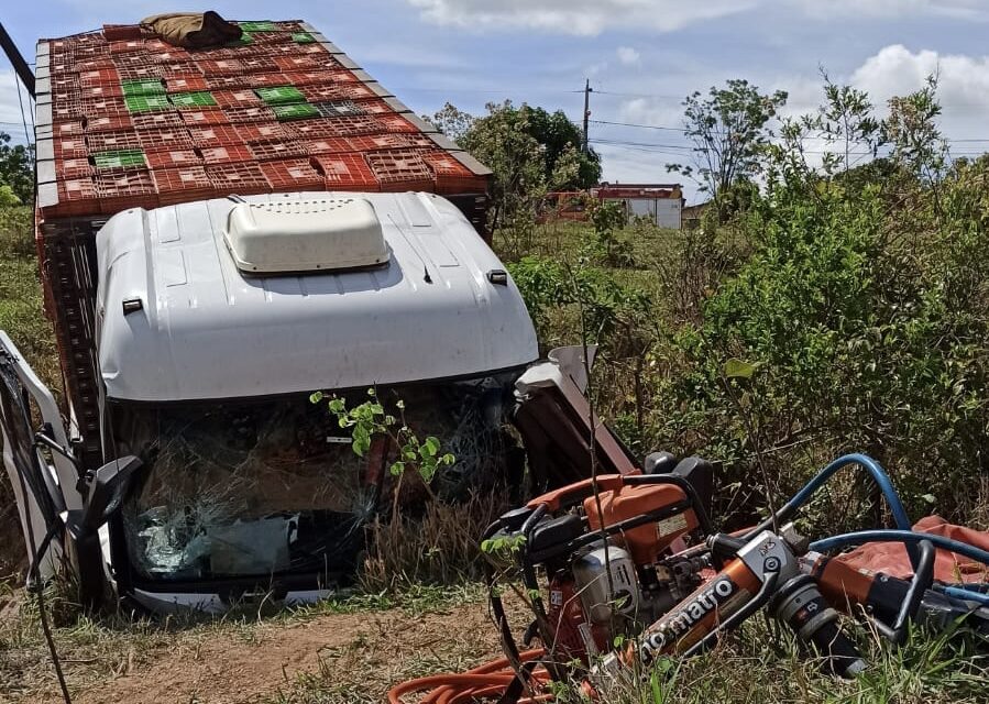 Caminhão perde o freio e motorista fica preso às ferragens na GO-415