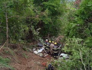 Uma pessoa morre e duas ficam feridas após caminhão cair em ribanceira na GO-154, próximo a Pilar de Goiás