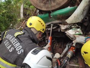 Uma pessoa morre e duas ficam feridas após caminhão cair em ribanceira na GO-154, próximo a Pilar de Goiás
