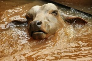 Parte de carreta com cabeças de gado é localizada cinco dias após cair no Rio Meia Ponte, na BR-153