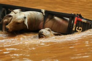 Parte de carreta com cabeças de gado é localizada cinco dias após cair no Rio Meia Ponte, na BR-153
