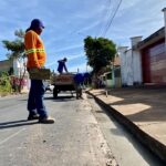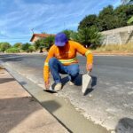 Após a conclusão do processo de recapeamento asfáltico de algumas ruas que estavam em estado critico, a equipe segue a construção das guias de meios-fios e sarjetas das vias.
