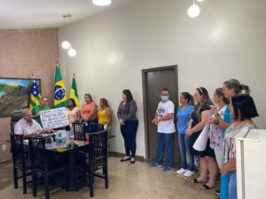 A visita foi para agradecer o reconhecimento e empenho do Prefeito Mário juntamente com o vice-prefeito Dr. Fábio, Secretária de Saúde Simony e Diretora Eulália, por conceder essa importante valorização salarial para a classe.