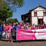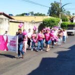 Com balões rosas e faixa a equipe municipal de saúde e demais participantes percorreram as ruas do município para chamar a atenção desta importante causa.