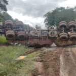 Motorista morre após carreta carregada de cimento tombar na BR-153