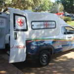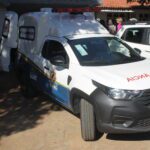 A ambulância é equipada com maca, cilindro de oxigênio, e aparelhos necessários para atendimento durante o transporte no veículo.