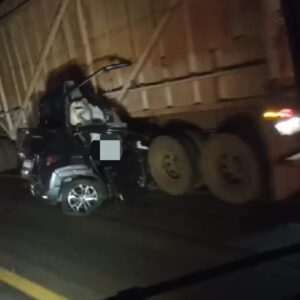 Dois homens morrem e mulher fica ferida em colisão entre carro e carreta canavieira na BR-153