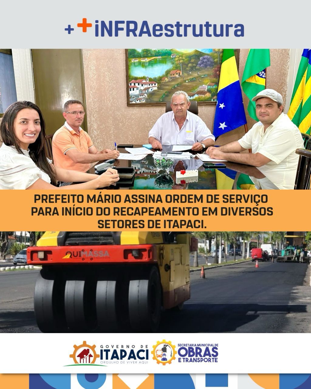 A assinatura ocorreu na sede da Prefeitura de Itapaci e contou com a presença do Secretário de Obras e Transportes Rogério Toureiro, engenheira Lorena e o representante da empresa ganhadora da licitação.