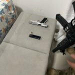 Durante o cumprimento de um dos mandados, foi apreendida uma pistola 9mm na casa de um casal na cidade de Rialma. Um investigado ainda foi preso por descumprimento de medidas protetivas.