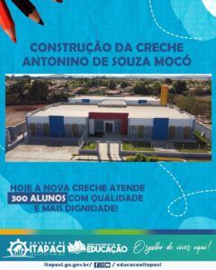 Desde que assumiu em 2017 a administração do Prefeito Mário José Salles investiu pesado na educação do município de Itapaci, trazendo diversos investimentos para a cidade, garantindo a valorização dos profissionais, alunos e na estrutura educacional.