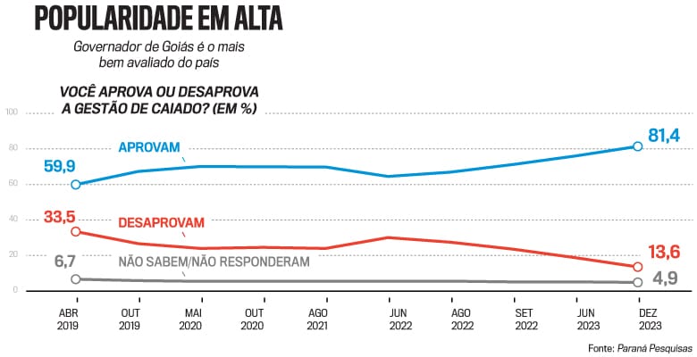 Além de combinar a candidatura com o próprio partido, Caiado, obviamente, precisa combinar essa pretensão com o eleitorado. Dentro do seu estado, isso não é problema: a aprovação dele é de 81%, segundo o Paraná Pesquisas, o melhor índice entre os governadores do país. São considerados pontos fortes de sua gestão o crescimento econômico, impulsionado pelo agronegócio, os bons indicadores de segurança e os resultados positivos de políticas sociais implementadas por lá — Goiás é o segundo estado que mais reduziu o índice de pobreza em 2022, segundo dados do IBGE. Para ganhar votos no restante do país, condição fundamental, considerando que o eleitorado goiano tem um peso de apenas 3% nas urnas, Caiado desde já trabalha no esforço de nacionalizar seu nome. Ele pretende abrir escritórios em São Paulo e Brasília nos próximos dois meses. Além disso, assumiu no último mês a presidência do Consórcio Brasil Central, que inclui os governadores do Distrito Federal, Maranhão, Mato Grosso, Mato Grosso do Sul, Rondônia e Tocantins. Caiado também vai adotar a estratégia de entrar em debates nacionais, sobretudo na área de segurança. “O Brasil precisa saber de que maneira vai enfrentar o narcotráfico. Ou vai se acomodar, como hoje se faz, ou nós teremos medidas capazes de poder libertar o país dessas facções”, afirmou ele a VEJA.