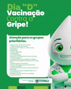 Saúde Itapaci realizará DIA D de vacinação contra influenza