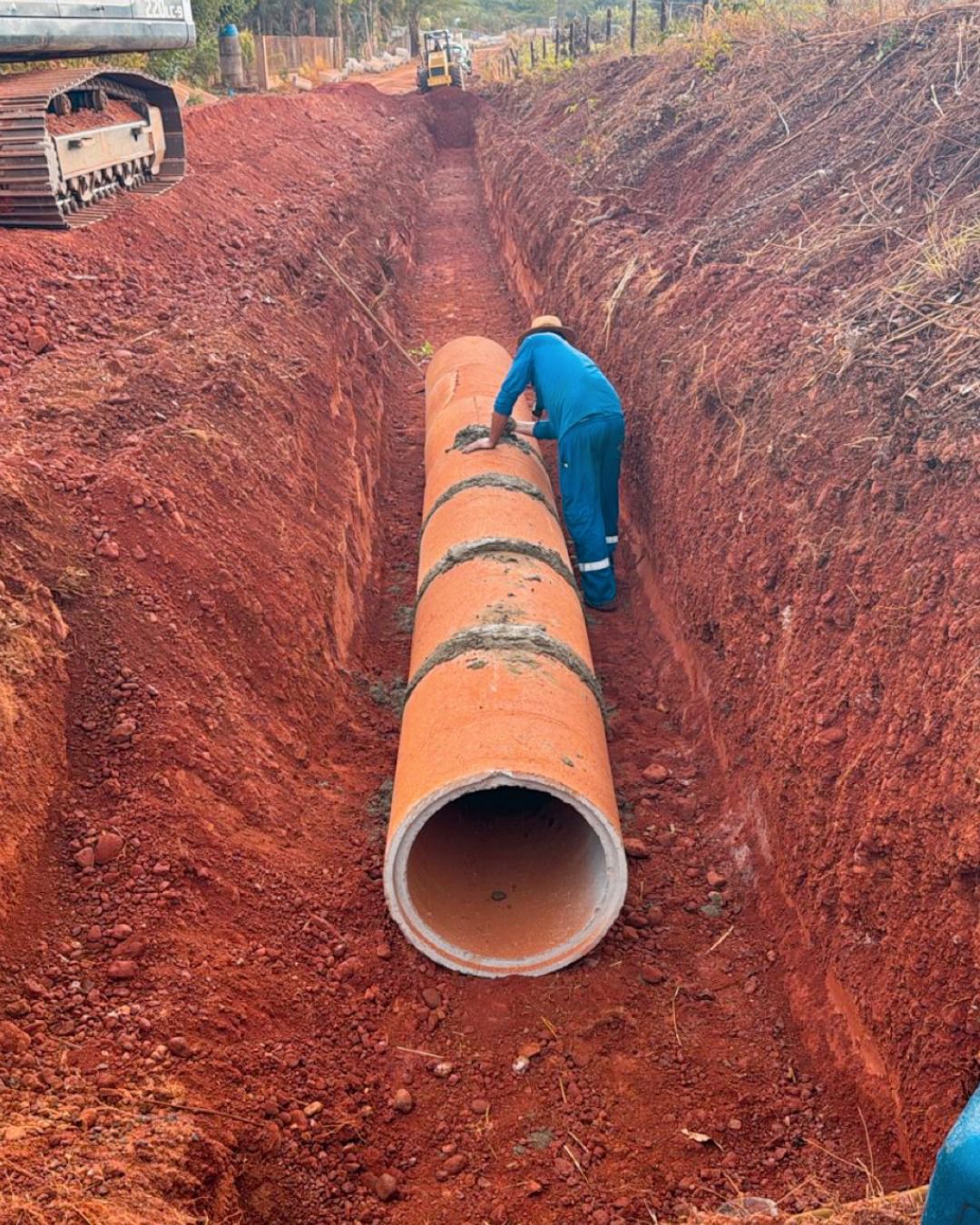 As equipes estão empenhadas na instalação das manilhas, que farão a drenagem de forma eficiente e segura.
