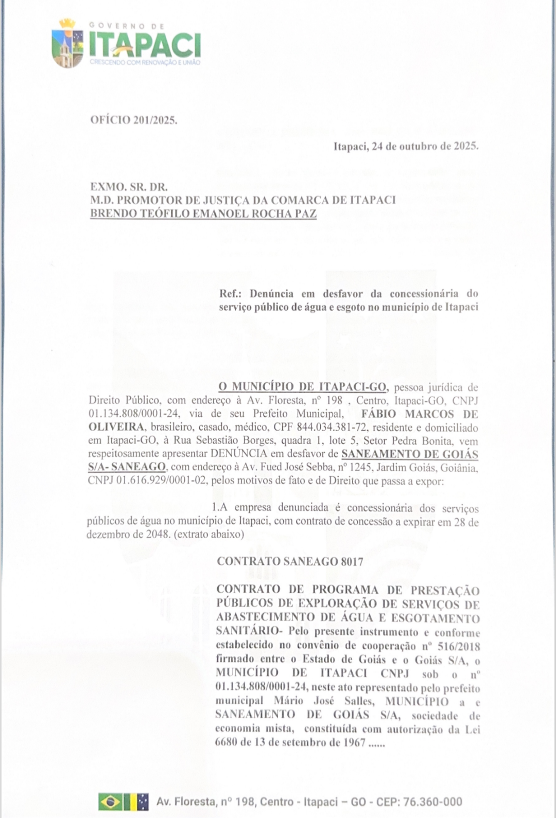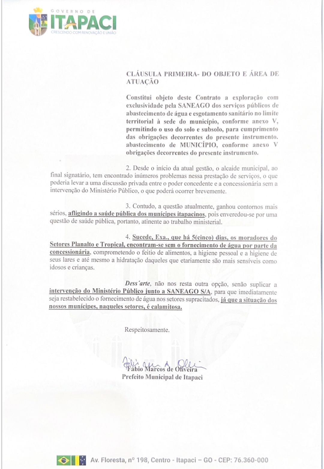 De acordo com o prefeito Dr. Fábio, o objetivo da reunião é buscar medidas urgentes para garantir que a empresa regularize o fornecimento o mais rápido possível. “A população de Itapaci não pode continuar sofrendo com a falta de um bem essencial. Estamos cobrando providências e não mediremos esforços até que o problema seja resolvido”, afirmou.